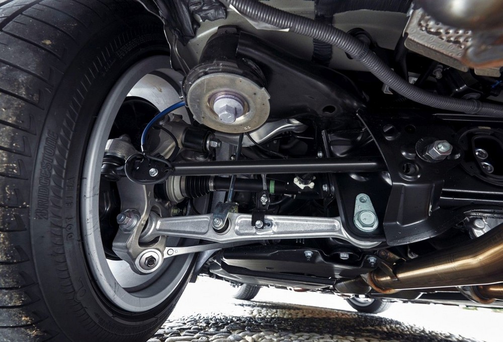Aby zachować niskie położenie maski znane z koncepcyjnego LF-LC, skonstruowano zupełnie nowe, wielowahaczowe zawieszenie przednie z górnymi wahaczami z kutego aluminium o podwójnych przegubach, zapewniających dokładne odwzorowanie ruchu dolnych wahaczy.