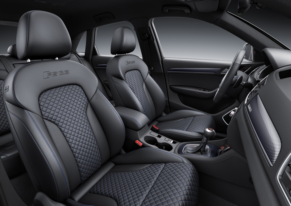 Bez dodatkowej opłaty, Audi oferuje również pakiet stylistyczny RS performance, w skład którego wchodzą dwubarwne siedzenia w kolorze czarno-niebieskim. Inne elementy, takie jak sportowa kierownica skórzana RS, kołnierz dźwigni zmiany biegów, środkowy podłokietnik i dywaniki, ozdobione są kontrastowym niebieskim szwem. Dekoracyjne wstawki wykonane z niebieskiego karbonu, gdzie w karbonowy materiał wpleciona jest niebieska nić, stanowią uzupełnienie tej ekskluzywnej kombinacji.