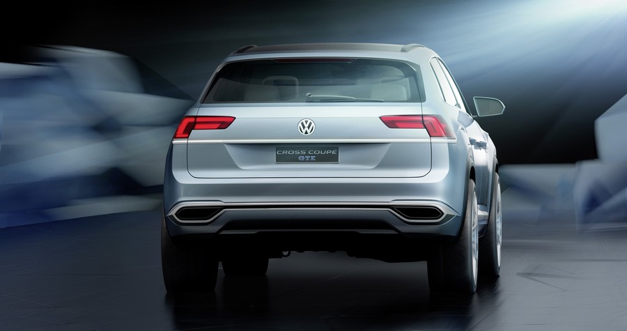 Także z tyłu Cross Coupé GTE nawiązuje do wytycznych północnoamerykańskiego języka designu Volkswagena i także tutaj dominują czyste, poziome linie. W obraz ten harmonijnie wpasowują się tylne światła, wyraźnie poziomy podział pokrywy bagażnika i umieszczone wysoko w sposób charakterystyczny dla SUVów końcówki rur wydechowych, które stanowią element poprzecznej, aluminiowej listwy w zderzaku. Dolną krawędź stanowi umieszczona centralnie osłona podwozia z dyfuzorem.